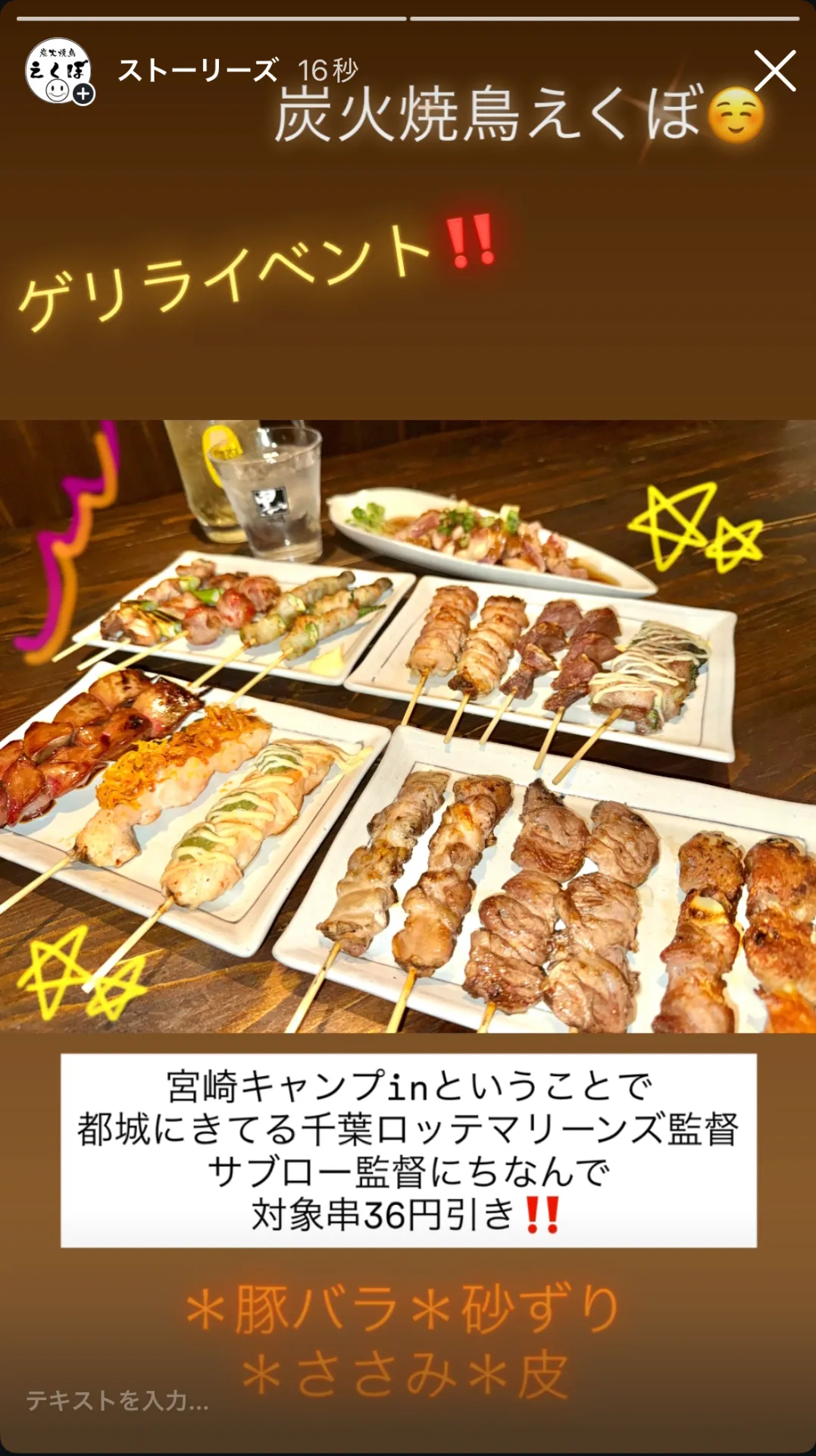基本的には、Instagramでの告知になるので、炭火焼鳥えくぼのインスタフォローお願いします🙇