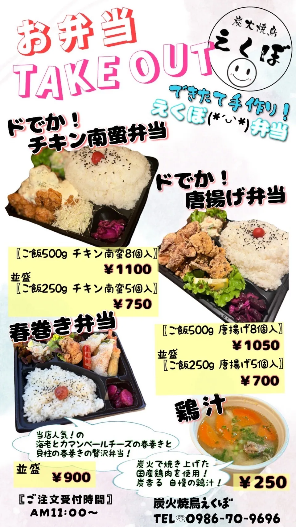 出来立ての弁当、温かい弁当を食べてもらいたいので、注文を頂いてから作るので多少のお時間は頂きます😥